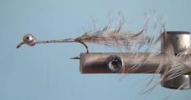 Queue: Hackle de selle Cree ou Grizzly et Flashabou perle