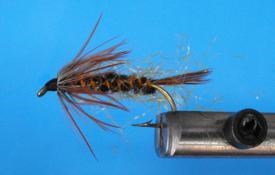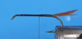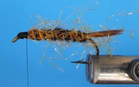 Voici la Fumeuse une nymphe qui représente un insecte qui est sur le point de se débarrasser de son ''exuvie''. L’exuvie désigne l'enveloppe (cuticule ou peau) que le corps de l'insecte a quitté lors de la mue. On peut la monter sur différente grosseur d'hameçon et différente couleur pour représenter l'insecte voulu. Elle se nomme la fumeuse parce que vue à contre-jour on dirait la fumée d'une cigarette.