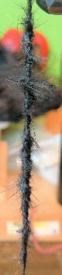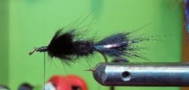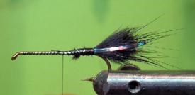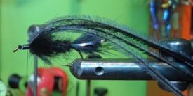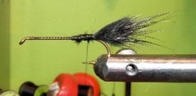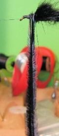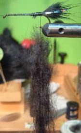 C'est une nouvelle création qui ressemble un peu à une nymphe de libellule, les grosses que l'on retrouve dans l'estomac des grosses truites. Dans la queue de la nymphe j'ai mis une "Étincelle" de couleur pour attirer l'attention de dame truite! Elle est faite de rat musqué, mais on peut très bien prendre des bandelettes de lapin!