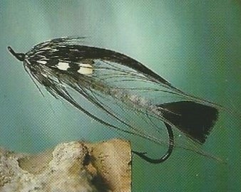 Queue: Deux plumes de coup (vert) de faisan doré, superposées pour imiter la queue d'un saumoneau.