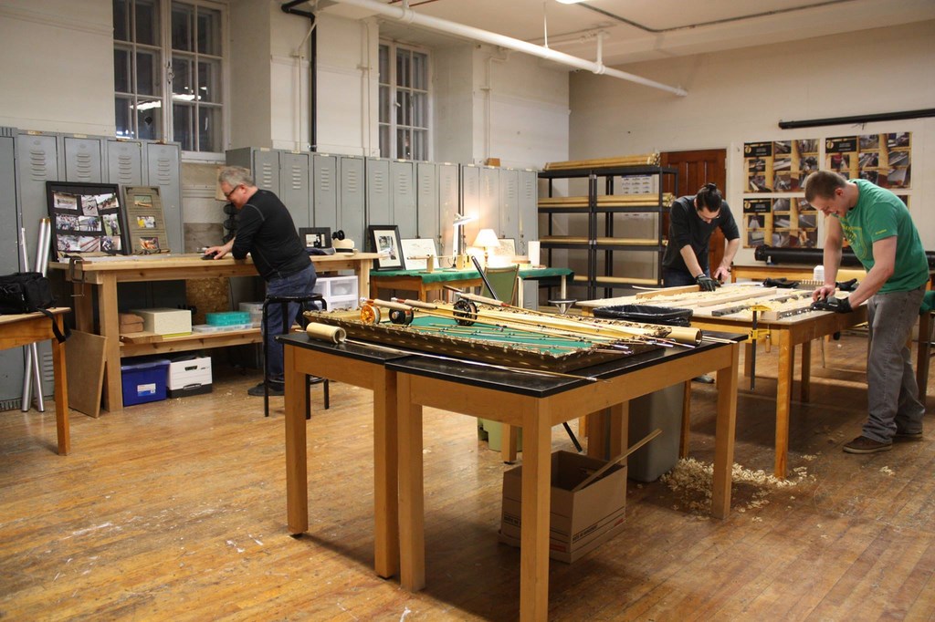 Après les présentations d'usage, Kelley me fit un portrait de la situation des fabricants de cannes à moucher en bambou aux États-Unis. J'appris plusieurs choses. Que ce travail artisanal de refendre le bambou Tonkin pour en faire des cannes à moucher existe depuis au moins 130 ans et qu'on retrouve environ 300 artisans fabriquant des cannes à moucher en bambou refendu aux États-Unis seulement, et encore bien d'autres ailleurs dans le monde. Que la célèbre compagnie Orvis possède toujours un atelier avec des artisans qui fabriquent de magnifiques cannes en bambou. Que c'est un Américain du nom de Everett Garrison, ingénieur en aéronautique, qui modifia les façons de faire et inventa de nouveaux outils au début du 20e siècle. Que les Américains possèdent ce savoir-faire qui sert maintenant de référence partout dans le monde. Voilà! La table était mise et j'allais enfin découvrir comment on fabrique ces petites merveilles convoitées par les pêcheurs à la mouche les plus exigeants et sensibles aux beaux objets.
