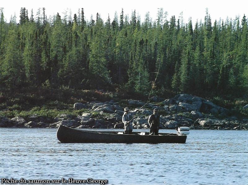 Si vous décidez d'aller pêcher le saumon dans les rivières de la région de la baie d'Ungava, sachez qu'il s'agit de véritables fleuves, souvent larges de 200 à 300 m (650 à 1 000 pi). Bien souvent, les saumons sont répartis sur toute la longueur et toute la largeur des cours d'eau en question: chaque grosse roche dans l'eau (et ce n'est assurément pas ce qui manque dans les rivières du Nouveau-Québec!) retient des saumons. Là-haut, les saumoniers pêchent souvent à la traîne et il y a fort peu de chances qu'ils «jiggent» même en pêchant avec des leurres métalliques (il est permis de pêcher le saumon avec des leurres métalliques jusqu'au 31 juillet). Il faut souligner que les sportifs récoltent bien plus de truites mouchetées, de truites grises, de ouananiches, d'ombles chevaliers que de saumons atlantiques. Dans les rivières moins larges que les fleuves Koksoak, George ou Whale (par exemple, dans leurs affluents), vous pourrez souvent pêcher à pied et même à pied sec: chaque cran de la berge casse le courant et les saumons ont l'habitude, comme dans les rivières de la Gaspésie et de la Côte-Nord, de se tenir dans le «tranchant» de l'eau créé par un tel obstacle. Évidemment, vous pourrez pêcher au pied des nombreux rapides (soit à pied à partir des rochers de la berge, soit après avoir bien ancré l'embarcation). Chose certaine, les pourvoyeurs et leurs guides connaissent fort bien les repaires usuels des saumons dans ces cours d'eau et vous y conduiront.