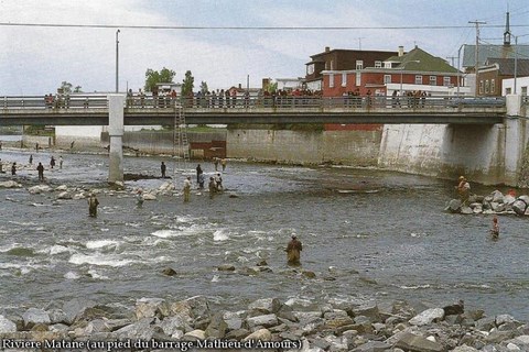 En début de saison, c'est la ruée des pêcheurs sportifs, surtout dans la fosse située immédiatement sous le pont, au pied du barrage Mathieu-d'Amours (où une très forte proportion de prises annuelles de saumons dans la Matane sont faites ... avant que les saumons n'aient pu franchir cet obstacle majeur et se répartir dans les fosses publiques situées en amont).