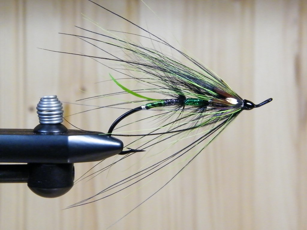 Collerette : Hackle spey vert fluo surmonté d’hackle spey noir.