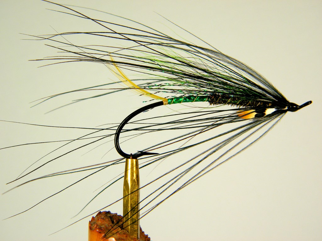 Corps : arrière; Tinsel holographique vert, avant; fibre de plume de Paon.
