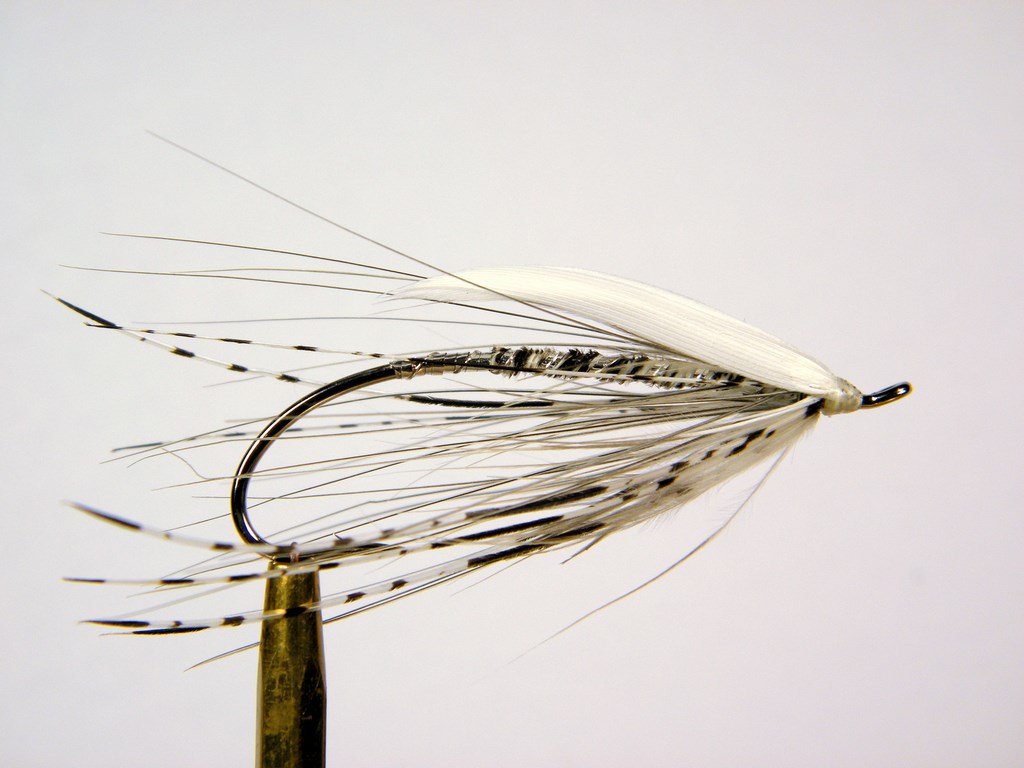 Aile : 4 sections de Plume d’aile D’oie blanche, monté type Spey.