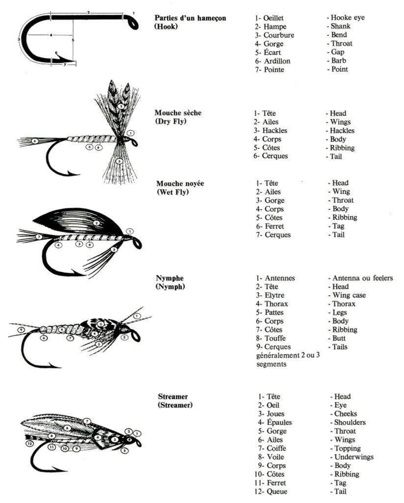Le lecteur peut suivre toutes les étapes du montage de mouches qui sont clairement illustrées par de nombreuses photos de grand format; il peut vérifier son produit final avec les magnifiques reproductions en couleurs; il peut encore prendre connaissance des toilettes de toutes les grandes mouches classiques, se familiariser avec les outils et matériaux utilisés, et au surplus, il peut consulter le lexique des véritables expressions françaises qui constitue, selon moi, la première recherche approfondie nous permettant enfin de dialoguer sur le sujet dans notre propre langue.