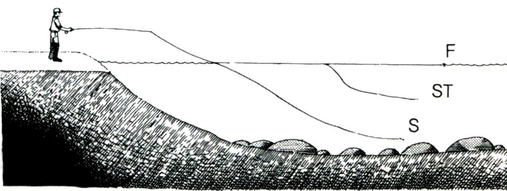 ST (Sinking Tip): ligne flottante à bout calant: mouche noyée - courant fort.