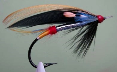 L'aile principale, formée à partir de sections correspondantes de plumes d'oie noires, doit être posée directement sur le dessus de la hampe de l'hameçon et doit être de longueur suffisante pour rejoindre l'extrémité de la queue.