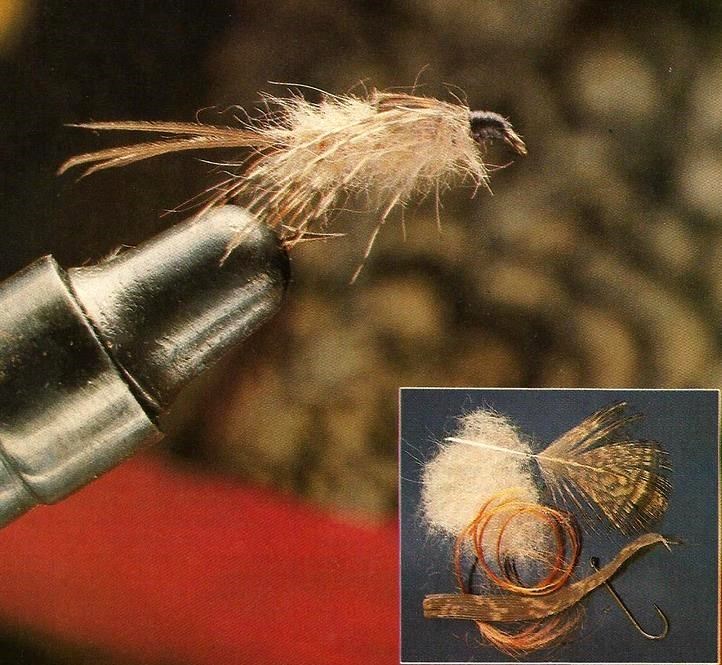 Les matériaux que nous utiliserons sont les suivants: hameçon: Mustad #9671, N° 12; fil de montage: #6/0, couleur brun ou gris; queue: 3 fibres de plume de queue de dinde brune ou plume de queue centrale de faisan à collier; côtes: brin simple de floche brune; abdomen: dubbing composé de duvet de jeune phoque de couleur ambre (proportion 2/3) mélangé avec fourrure de ventre de renard roux (proportion 1/3)); thorax: même que l'abdomen; élytre: section de plume de dinde brune; pattes: plume de dos de gélinotte huppée brune ou grise.