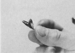 Après avoir dessiné sur une face la silhouette d'une aile de mouche, j'ai découpé cette silhouette sur les deux parties en même temps avec des ciseaux à tôle. Après quelques coups de lime pour enlever les grenailles et arrondir les coins, ma pince était prête à remplir sa fonction (voir figure 1).
