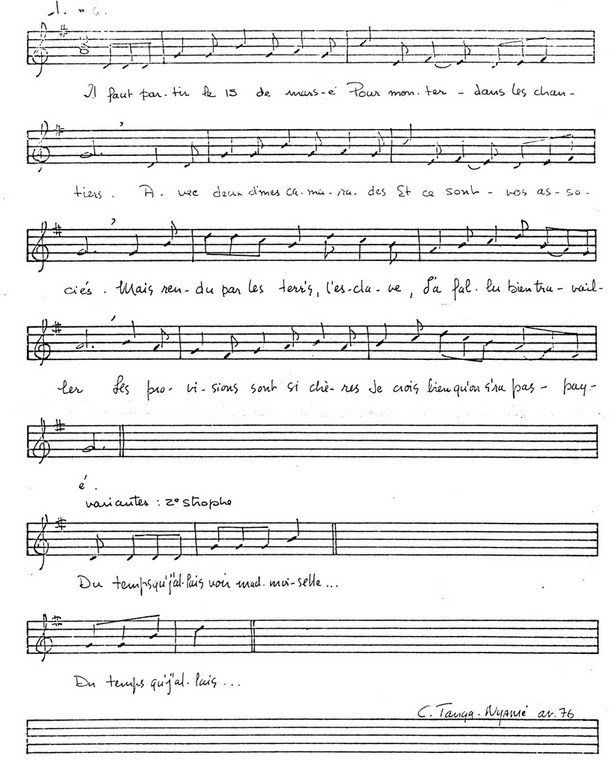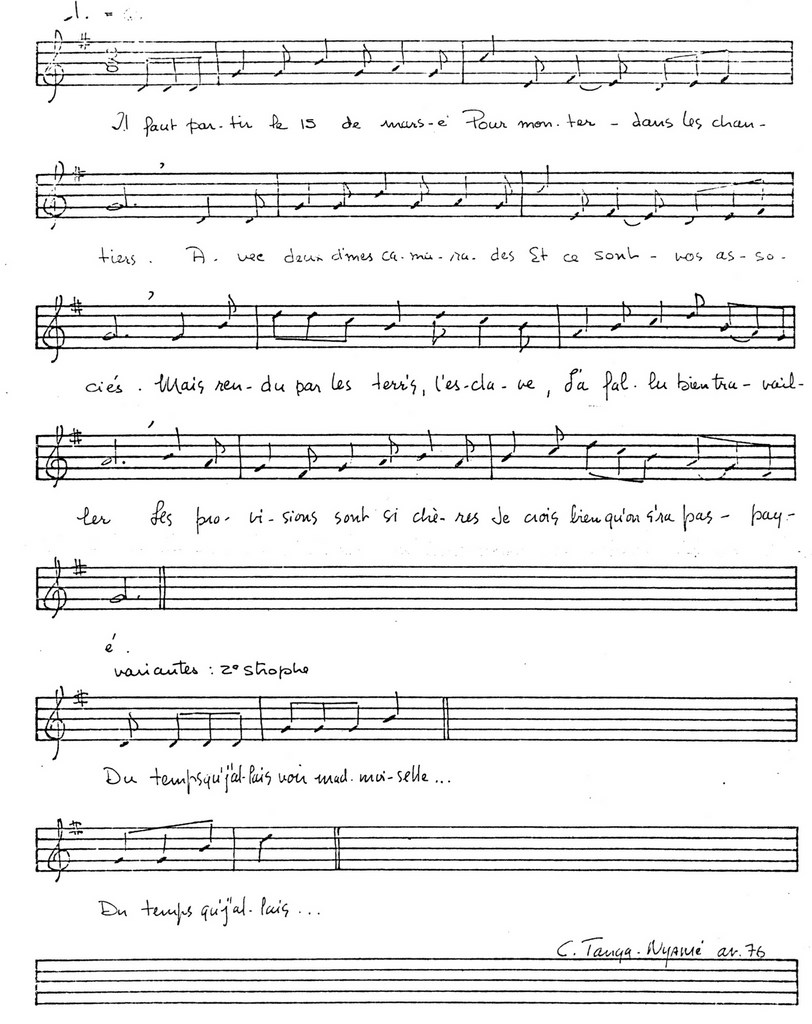 Cependant la version que nous reproduisons n'est pas celle de monsieur Langlois, mais d'une de ses voisines madame émile Castillou. Si nous avons retenu cette version, c'est parce que nous en avions obtenu la transcription musicale :