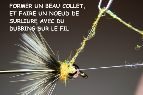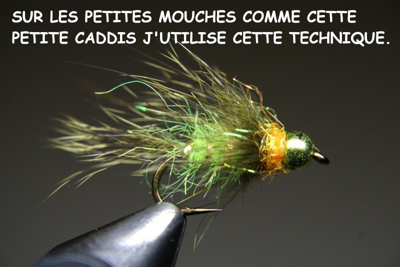 Voici une deuxième technique à utiliser surtout sur les petites mouches. Le noeud de surliure avec le dubbing sur le fil est le truc de ce montage.