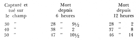 Je vous ai donné une table des relations longueur-poids pour la truite. Je vous ai également signalé le fait que les poissons perdaient du poids après leur sortie de l'eau et continuaient à en perdre pendant plusieurs heures, non seulement dans la chaloupe, mais une fois arrivé au chalet, et à plus forte raison, une fois chez vous en ville. Certains pêcheurs ne verront aucun intérêt dans ce qui va suivre, mais ceux que la question du poids exact d'un poisson au moment de sa capture intéresse seront sans doute ravis de prendre connaissance du tableau suivant :