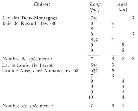 Jean-René Mongeau tient à préciser (l'on reconnaît bien là l'homme de science) que ces données ne sont valables que pour les endroits d'où proviennent les spécimens. N'allez donc pas généraliser et appliquer les chiffres suivants aux perchaudes qui habitent tel ou tel lac du nord, par exemple.
