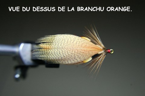 Voici une mouche dont j'ai entendu bien parlé! La fameuse Branchu orange de feu Jean-Guy Côté fondateur des Produits UNI. Mon père à eu énormément de succès avec cette artificielle pour la pêche à l'achigan et c'est pour cela que j'ai décidé d'en faire un photo/montage étape par étape. Je n'ai jamais eu l'occasion de voir Jean-Guy Côté en monter une, donc j'y vais d'après mes informations. C'est la première fois que je monte cette mouche, s'il y a des connaisseurs qui voient dans mon montage des erreurs S.V.P. ne vous gêner pas! Bon montage!