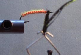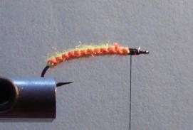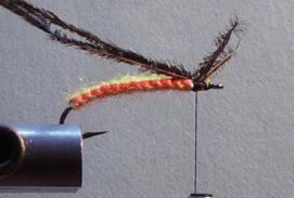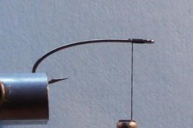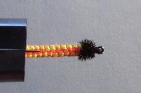 Tête : Barbes de queue de paon torsadées dans le fil de montage.