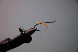 Attacher une pincée de poils de queue de chevreuil brun pâle.