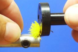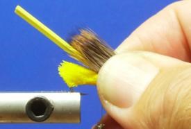 #10) A l’aide de la bande de « foam » séparer l’aile en deux parties égales en venant la fixer derrière l’œillet. Attacher et sécuriser.