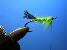 Corps: Dubbing de blanchon (ou laine) vert kelly (vert brillant dans ce montage).