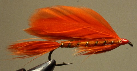Un montage de ma création m'a permis de réaliser de belles captures, je l'ai baptisé la Juneau Spécial. Cette artificielle flamboyante a l'heur de plaire au doré, tout comme au monteur puisque ce montage unicolore ressemble, à quelques nuances près, à celui d'un streamer conventionnel. À utiliser en plein jour lorsque vous pêchez en rivière, ou encore sur un lac, bien ancré au-dessus d'une fosse. À la traîne, cette artificielle s'avère plus efficace en fin de soirée.