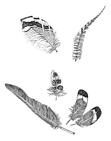 PATTES: Une pincée de fibres de plume de flanc de branchu, posée comme une gorge.