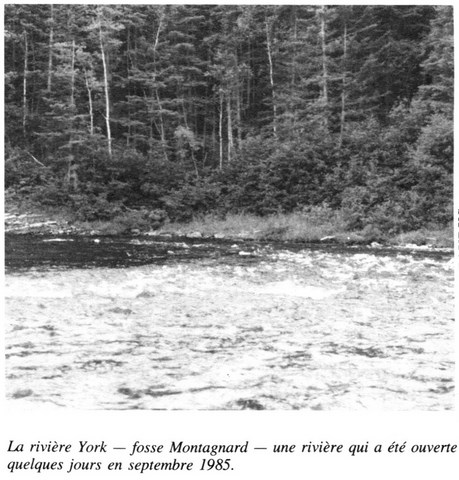 Cette année on a laissé la York ouverte quelques jours en septembre afin d'y permettre une pêche expérimentale. Bien peu de publicité a été faite sur le sujet... Qui plus est l'expérience a tourné court, et avec raison... car peu de saumons étaient au rendez-vous en septembre dans les secteurs du bas de la rivière. C'est une énigme pour moi... car l'expérience aurait dû être faite sur la Dartmouth plutôt que sur la York. Surveillant les rivières de près je me suis vite rendu compte que la Dartmouth donne du saumon en septembre sur les secteurs du bas de la rivière. Début octobre j'ai repéré quatre saumons sur la première fosse (Bouchard) de la Dartmouth... ce qui laisse croire qu'il y en avait d'autres sur les autres fosses du secteur un! Alors imaginez entre le premier septembre et le vingt septembre... la pêche y aurait été parfois de qualité satisfaisante. J'ose croire que le MLCP refera son expérience en septembre 86... mais cette fois sur la bonne rivière. Quand on a trois rivières à saumons comme c'est le cas chez nous le MLCP devrait faire preuve de flexibilité dans ses expériences.
