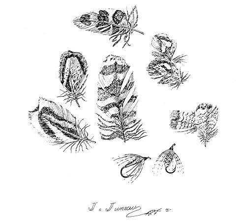 ÉPINGLE À PIQUER: Trois-quart de pouce. Le dos de la mouche doit être marqué en noir à l'encre de chine indélébile, puis recouvert du monofilament.