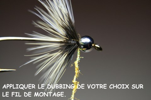 Voici une deuxième technique à utiliser surtout sur les petites mouches. Le noeud de surliure avec le dubbing sur le fil est le truc de ce montage.