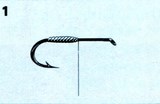 Au milieu de la hampe de l'hameçon, vous attachez le lamé argent plat, que vous enroulez ensuite bien serré, en allant vers l'arrière de l'hameçon, pour couvrir votre fil; puis vous enroulez ensuite votre lamé vers l'avant, en recouvrant la première «couche» du corps, jusqu'à la moitié de la hampe.