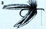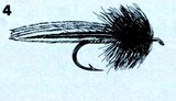 La collerette est formée de 12 hackles de cou «badger». Vous les attachez deux à la fois (par la base et la face extérieure de la plume vers la tête de la mouche) et vous les tournez très serrés les uns contre les autres, en leur donnant un angle d'environ 45° vers l'arrière. Formez la tête et recouvrez-la d'un vernis clair.